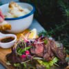 Grilled medium wagyu beef with steamed vegetables