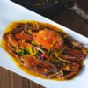 Roasted duck with homemade famous duck sauce with bok choy and pickled ginger