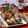 Steamed whole barramundi with ginger, sauted in a tasty soy and sesame sauce