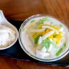 Water chestnut, jackfruit, toddy palm, young coconut meat in coconut syrup